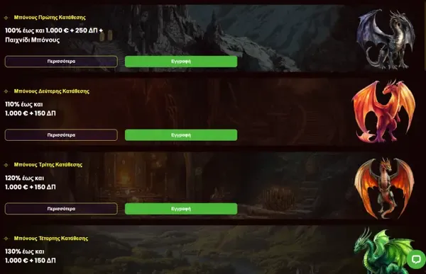 - Μπόνους καλωσορίσματος για νέες εγγραφές.